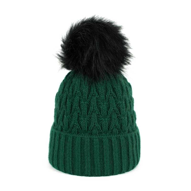 Cieplutka czapka zimowa zdobiona futrzastym pomponem.