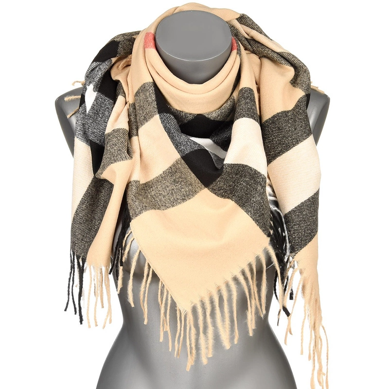 Kaszmirowy Szalik Damski Duży Szal Piękne Kolory Chusta Krata Duży Wybór