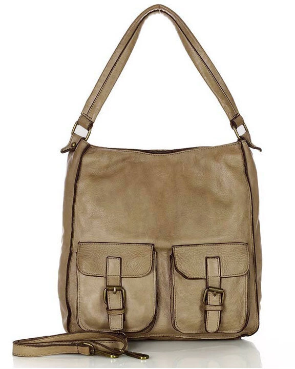 Torebka skórzana na ramię z kieszonkami safari leather bag - MARCO MAZZINI beż taupe