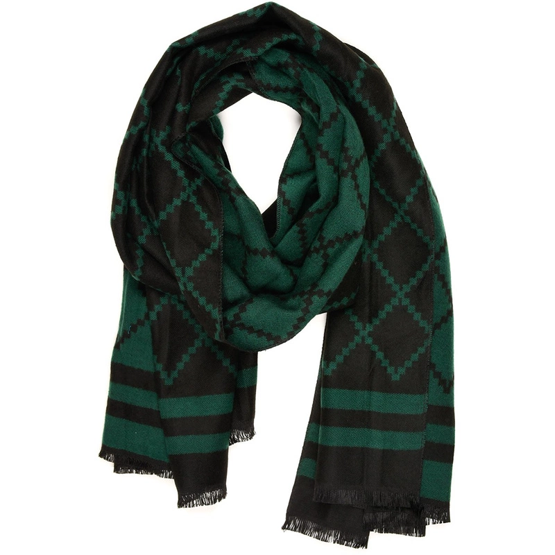 Zielony Duży Szalik Damski bawełniany ciepły szal frędzle AX-98