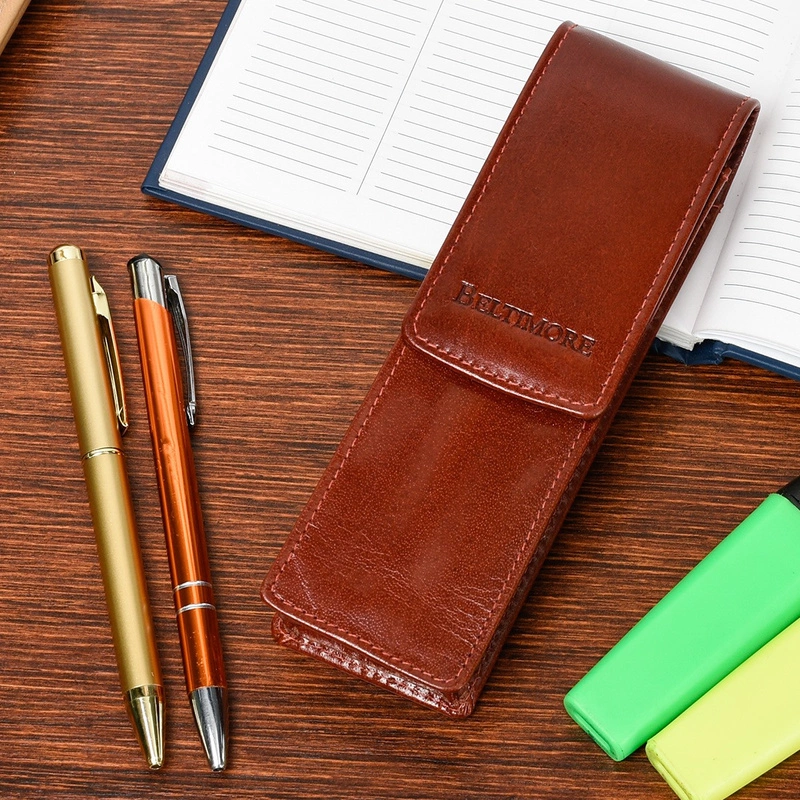 Piękne, skórzane etui na długopisy / pióro w brązowym kolorze marki Beltimore®. Etui dedykowane jest zarówno dla kobiet jak i mężczyzn.