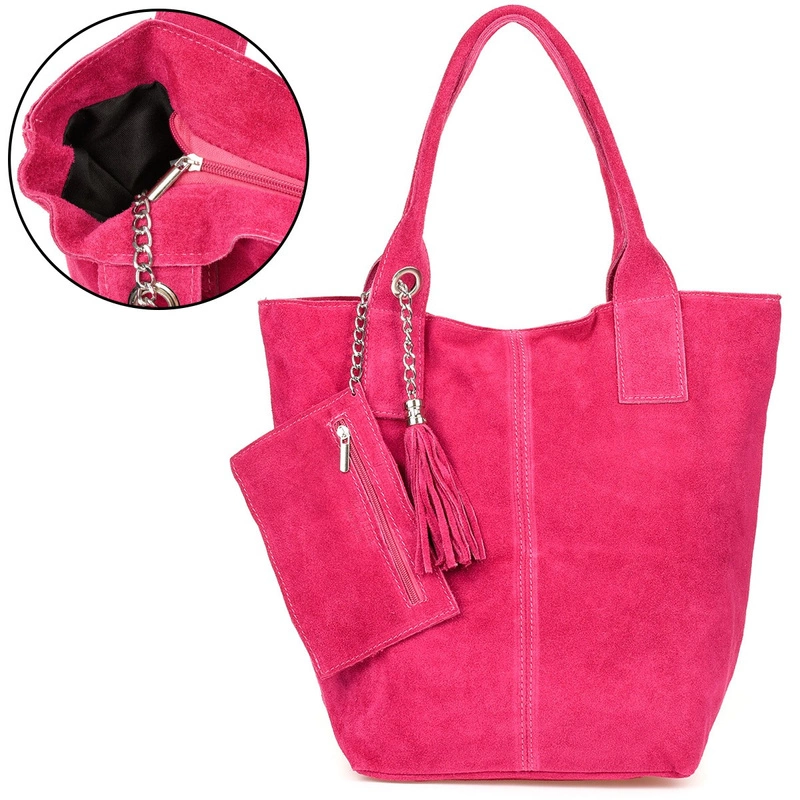 Opinie o Różowa włoska torebka skórzana zamszowa A4 shopperka T49