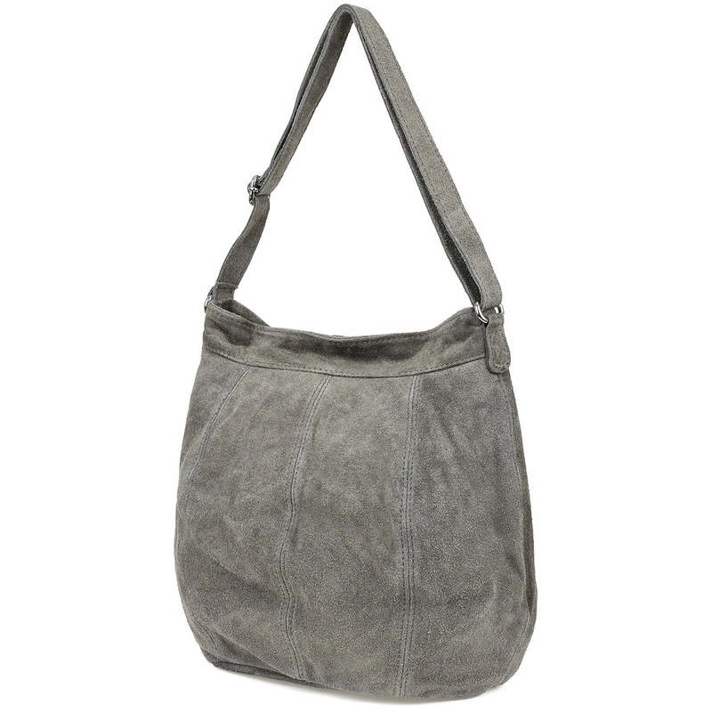 Opinie o Szara zamszowa torebka damska A4 skórzana worek K49
