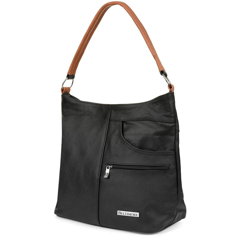 Opinie o Czarno-camelowa Torebka Skórzana listonoszka damska duża klasyczna H08