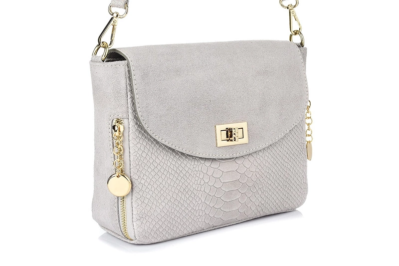 - Torebka wykonana niezwykle starannie, we Włoszech, z wysokiej jakości skóry naturalnej; - Stylową i modną ozdobę stanowią złote zamki z brelokami po bokach torby;