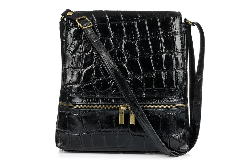 Torebka wykonana jest z wysokiej jakości skóry naturalnej, oryginalności dodaje jej zdobienie CROCO w ciemno-zielonym kolorze, które jest HITem tego roku!