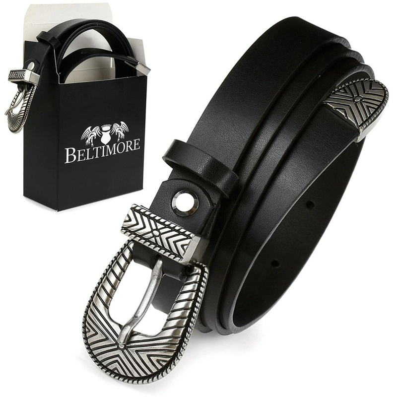 Skórzany pasek damski podkowa kowbojski BELTIMORE D62 : Kolory - czarny, Rozmiar pasków - r.100-115 cm