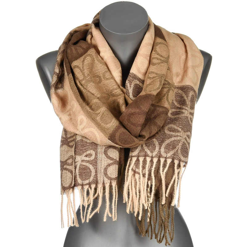 Beżowy Duży Szalik Damski bawełniany ciepły chusta na szyję RE-73