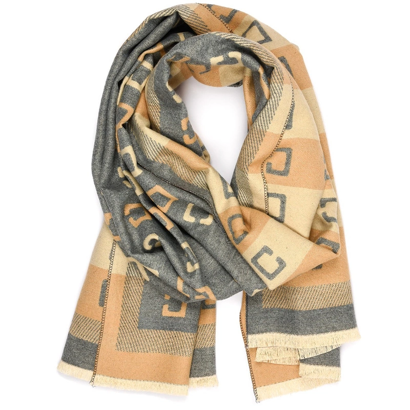 Szary Duży Szalik Damski bawełniany ciepły szal jesień RE-70