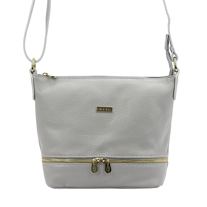 - Modna skórzana torebka marki MiaMore. Lekki i wygodny model zamykany z góry na zamek. Listonoszka o średnich rozmiarach będzie idealnym dodatkiem na co dzień. Złote okucia sprawiają, że torebka prezentuje się elegancko i szykownie.