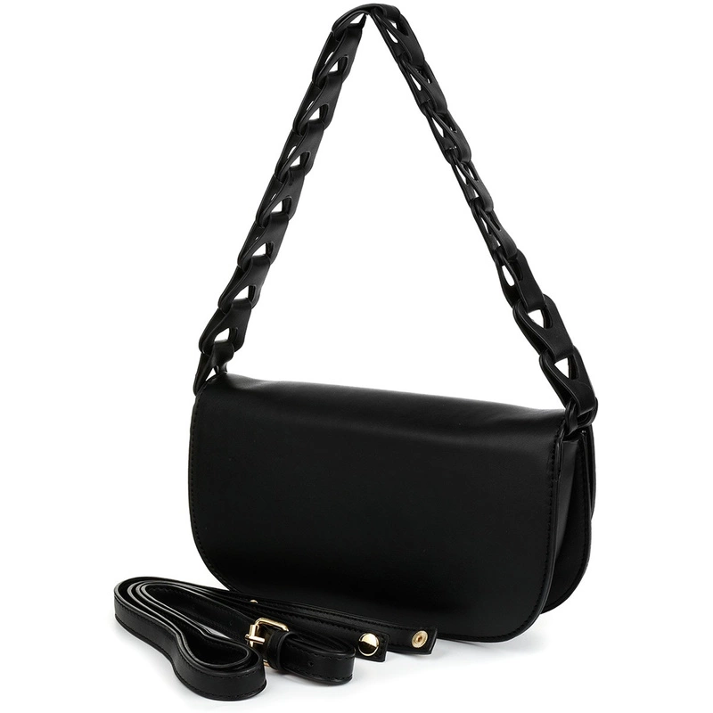 Damska torebka usztywniana, zgrabna podkówka w zestawie z paskiem gumowym plecionym i doczepianym klasycznym