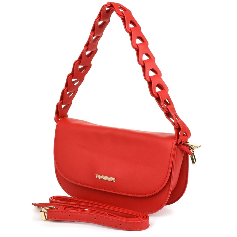 Czerwona Torebka gładka pasek gumowy usztywniana podkówka Z41