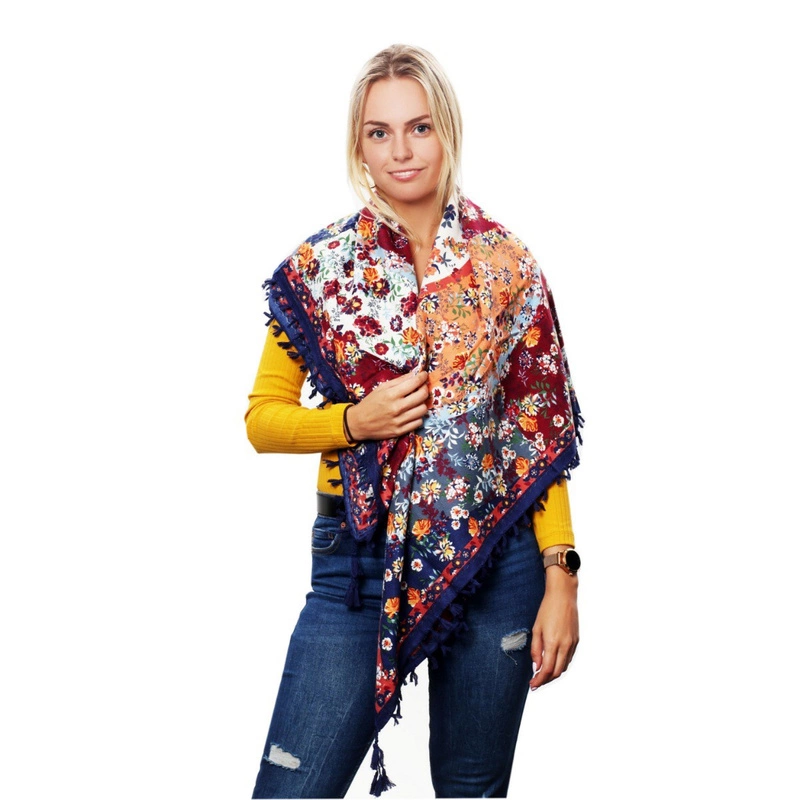 Modna chusta damska, wzór folk, wielokolorowe kwiaty, dzięki którym każda stylizacja nabiera oryginalności.
