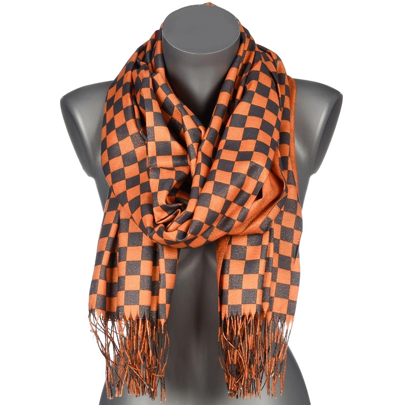 Pomarańczowy Duży Szalik Damski bawełniany ciepły szachownica AX-90