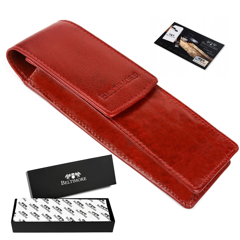 Piękne, skórzane etui na długopisy / pióro w czerwonym kolorze marki Beltimore®. Etui dedykowane jest zarówno dla kobiet jak i mężczyzn.