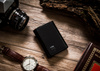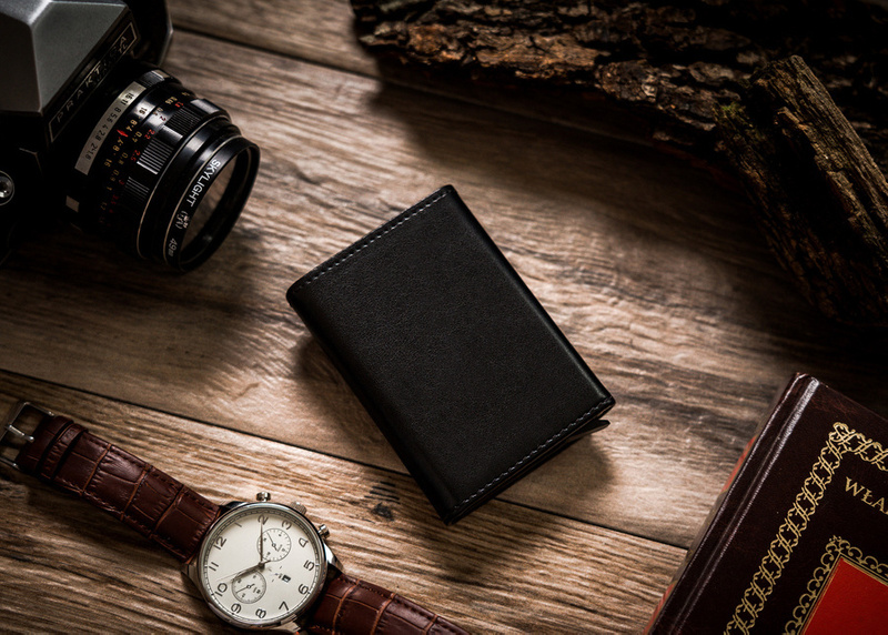 - Miniaturowy, skórzany portfel męski z mocnym zatrzaskiem. Wykonany z wysokojakościowych materiałów klasy premium. wewnątrz zakładki na dokumenty oraz aluminiowy podajnik na karty z systemem RFID Stop. Akcesorium zapakowane w markowe pudełko.