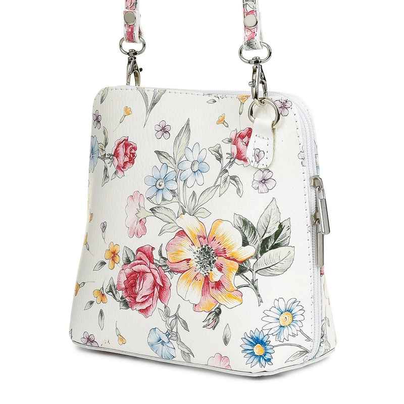 Vera Pelle Torebka Skórzana mała listonoszka motyw kwiaty na bieli K03