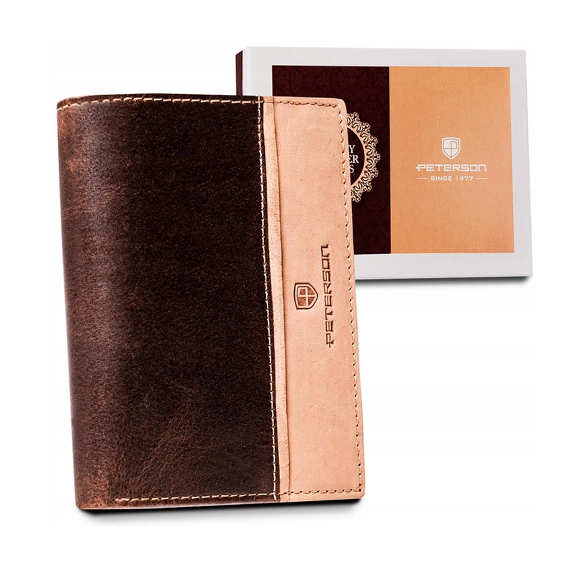 Duży, dwukolorowy portfel męski ze skóry naturalnej — Peterson