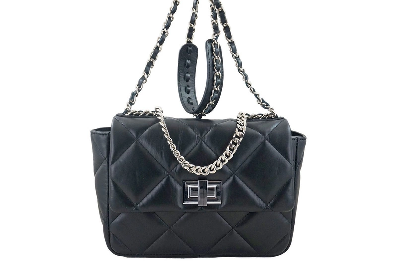Torebka pikowana na łańcuszku wykonana została ze skóry naturalnej licowej najwyższej jakości. Klasyczny kształt, urozmaicony ukośnymi przeszyciami, wyróżnia ten model, czyniąc z niego idealny dodatek na spotkanie lub wyjątkowe okazje. Modne przeszycia nawiązują do najbardziej pożądanych i luksusowych torebek, które wylansowała słynna francuska projektantka, Gabrielle Coco Chanel.