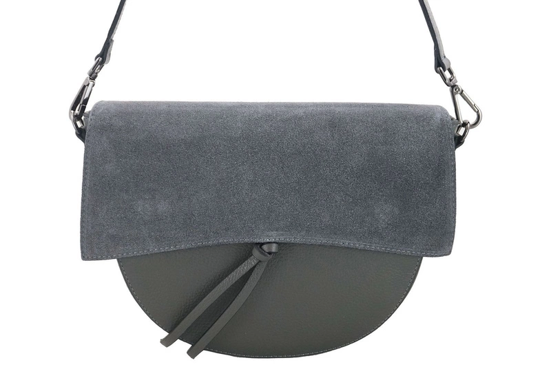 Modna torebka damska z zamszową klapką - Szara ciemna