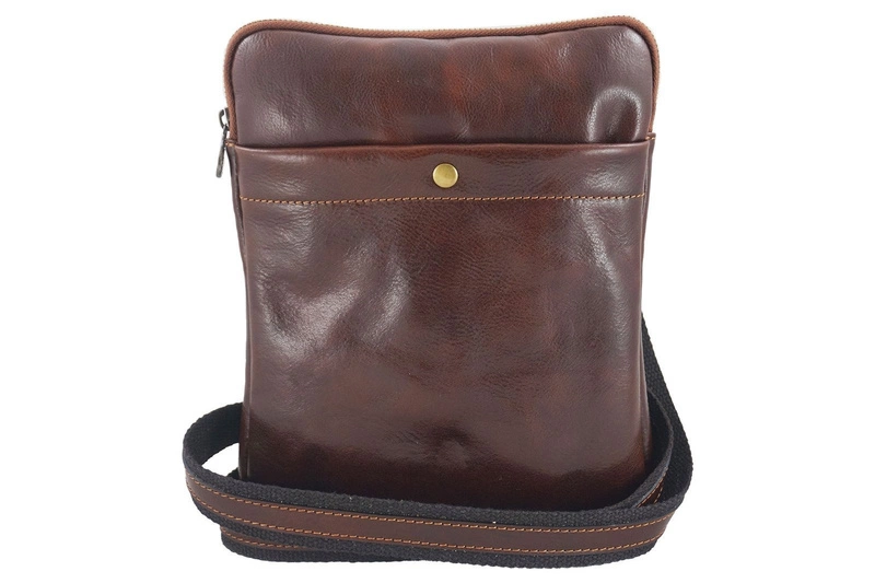 Modna męska torba skórzana z regulowanym paskiem - Brązowa