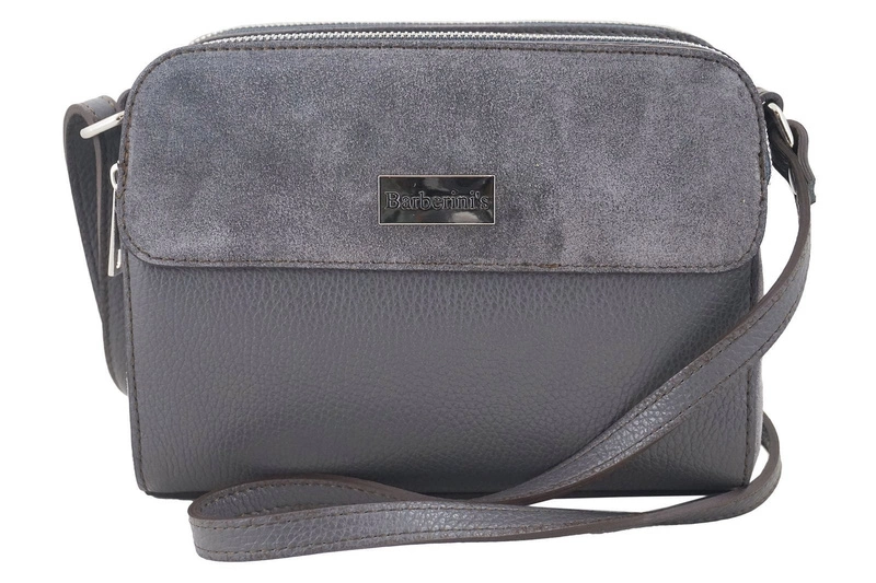 Torebka skórzana crossbody zamszowa - Szara ciemna