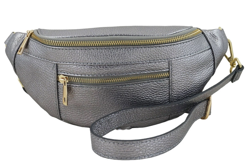 Modna torebka nerka metalizowana srebrna ciemna została wykonana ze skóry naturalnej licowej. W kolekcji galanterii skórzanej oferujemy modne oraz klasyczne dodatki garderoby, które idealnie komponują się ze swobodnymi i niezobowiązującymi stylizacjami. Modna torebka nerka metalizowana to niezastąpiony dodatek garderoby na spotkanie z przyjaciółkami. Nie krępująca ruchów - regulowany pasek umożliwia noszenie torebki nerki wygodnie w pasie lub przewieszonej przez ramię. Wyjątkowe i gustowne torebki skórzane - listonoszki, nerki, klasyczne oraz worki dostępne w naszym sklepie wyróżniają się modnym fasonem, subtelnymi ozdobami oraz solidnym wykonaniem. Dostępna w najnowszej kolekcji modna torebka nerka metalizowana w srebrnym kolorze podkreśli charakter Twoich stylizacji na wyjątkowe okazje.