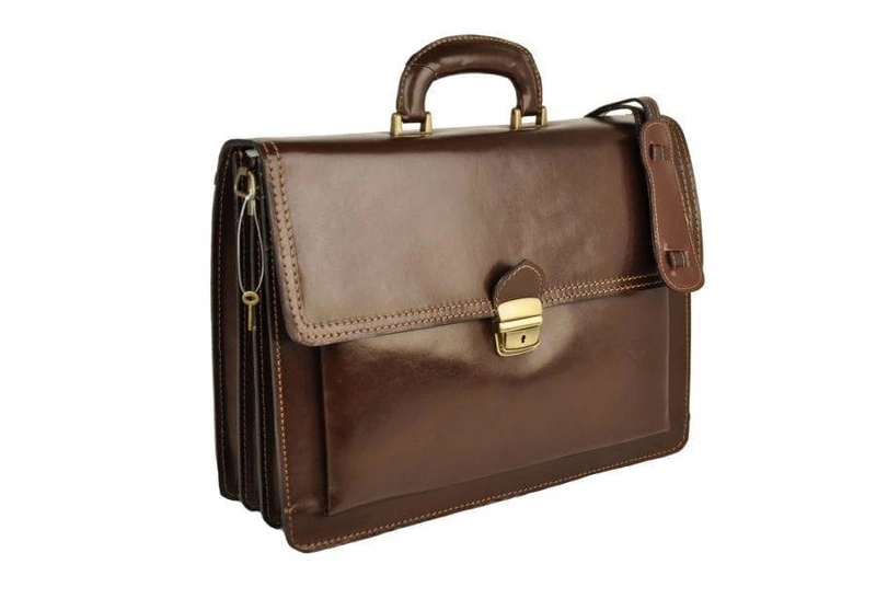 Aktówka męska skórzana - Barberini's - Brązowa ciemna