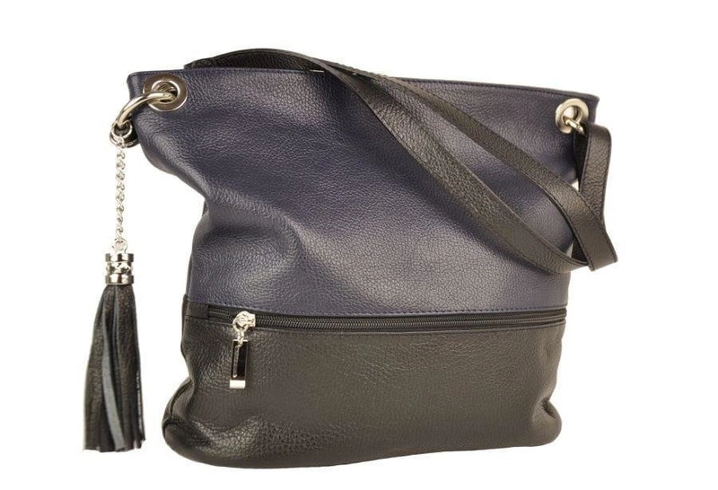 Skórzana torebka worek - Granatowo-czarna