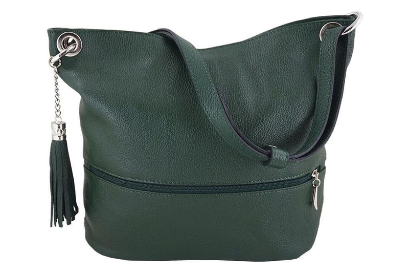 Skórzana torebka worek Barberinis - Zielona ciemna