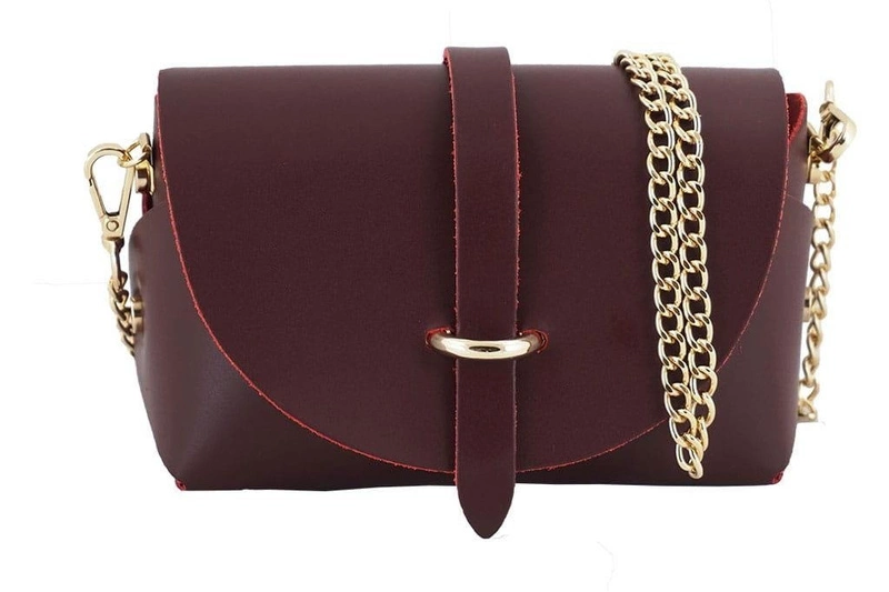 Wnętrze listonoszki: modne listonoszki wizytowe są bezszwowe, surowo wykończone, posiadają złote okucia. Zapinane są paseczkiem przechodzącym przez złotą ozdobną szlufkę. Długość łańcuszka listonoszki 120cm.