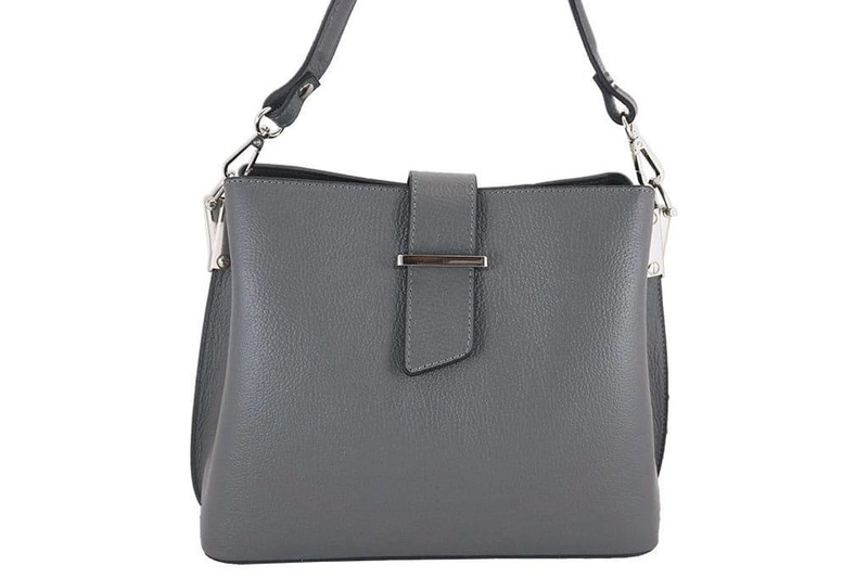 Modny kuferek skórzany damski włoski - Szary ciemny