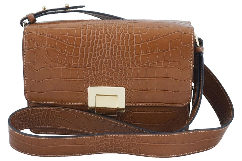 Modna torebka skórzana - CROCO - Brązowa jasna