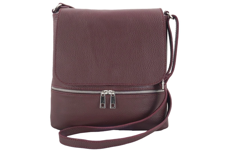 Opinie o Skórzana torebka listonoszka z klapką - Bordowa