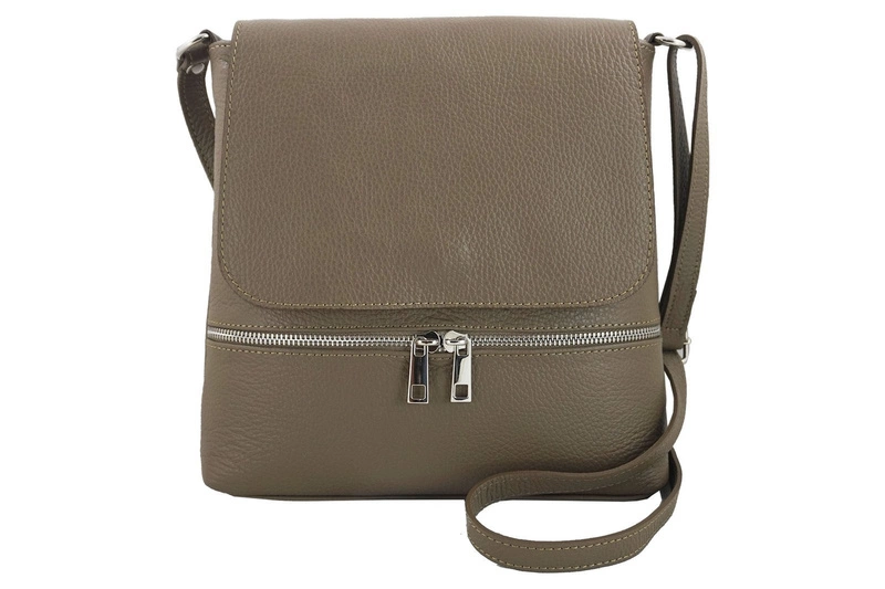 Skórzana torebka listonoszka z klapką - Beżowa ciemna