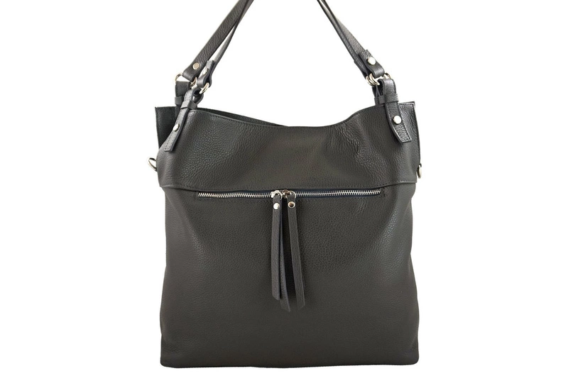 Duży skórzany worek / shopper bag - A4 - Szary ciemny
