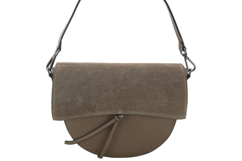 Modna torebka damska z zamszową klapką - Beżowa ciemna