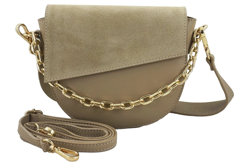Torebka skórzana z ozdobnym łańcuszkiem - Beżowa