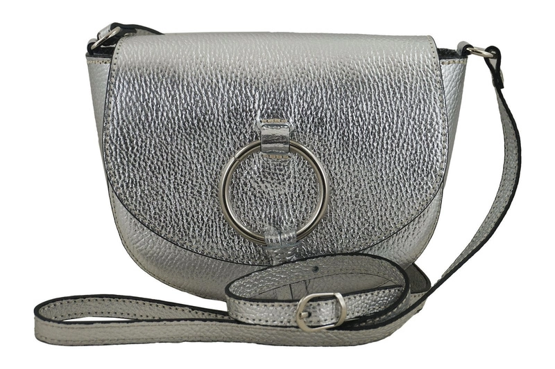 Damska skórzana listonoszka włoska - Srebrna