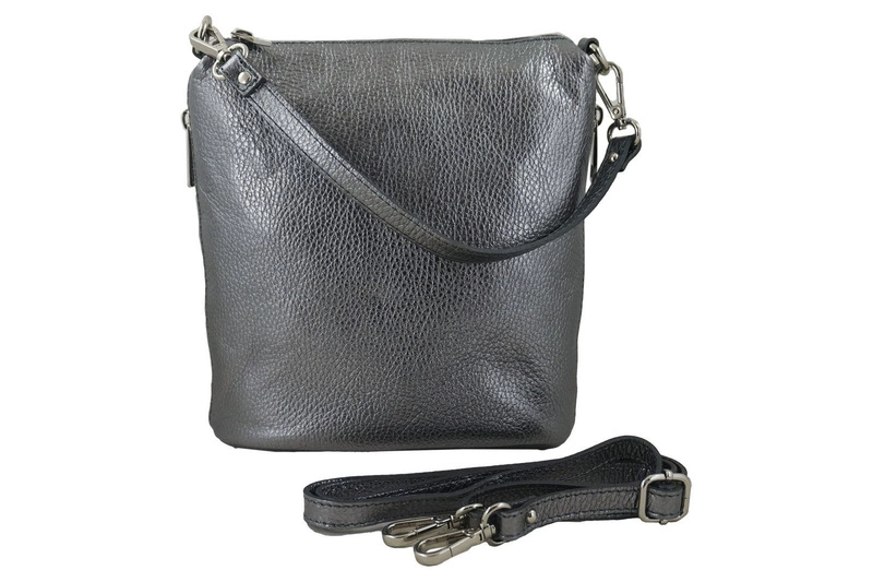 Listonoszka metalizowana na ramię skórzana - Srebrna