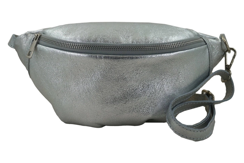 Wnętrze saszetki / nerki: jednokomorowe wnętrze jest wykończone podszewką. Nerka saszetka damska metaliczna posiada kieszeń wewnętrzną zasuwaną mieszczącą np. karty płatnicze lub klucze, wygodnej długości doczepiany pasek z regulacją (maksymalna dł. 100cm, maksymalna wys. 46cm) oraz srebrne okucia i wyróżniające ten model delikatne marszczenie z przodu. Szukasz modnego dodatku niezobowiązującej stylizacji? W naszym sklepie znajdziesz szeroką ofertę wygodnych listonoszek, saszetek oraz plecaków ze skóry naturalnej. Nerka saszetka damska metaliczna to doskonały wybór torebki na każdy dzień.