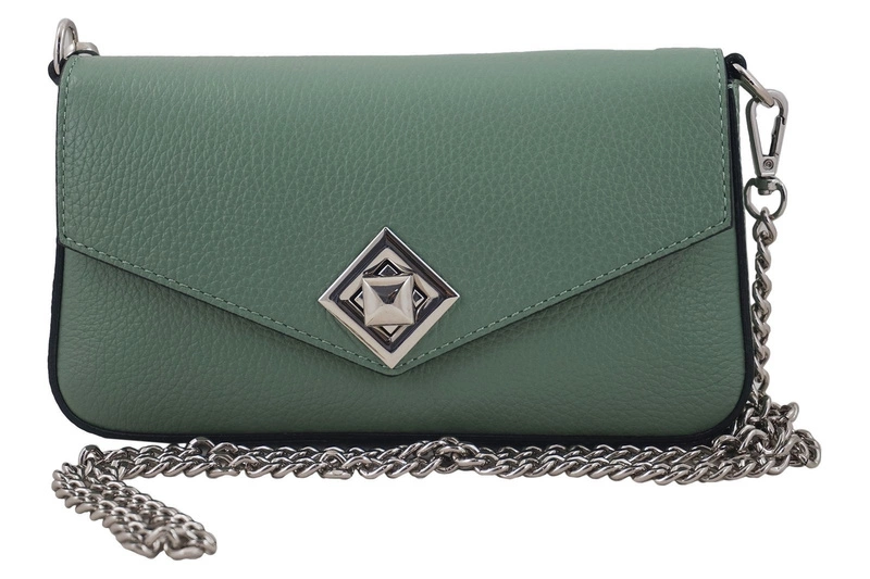 Wnętrze torebki: jednokomorowe wnętrze jest wykończone podszewką. Wewnątrz wyodrębniono małą otwartą kieszeń mieszczącą karty płatnicze, banknoty lub mniejsze kosmetyki. Małe skórzane torebki wizytowe posiadają srebrne okucia, dopinany łańcuszek bez regulacji (długość 120cm, wysokość 60cm), są zapinane ozdobnym srebrnym zapięciem wyróżniającym ten model listonoszki, która będzie idealnym dodatkiem galanterii skórzanej na każdy dzień, jak i na wyjątkowe okazje. Małe skórzane torebki wizytowe, są dostępne w szerokiej gamie kolorystycznej w kategorii LISTONOSZKI.
