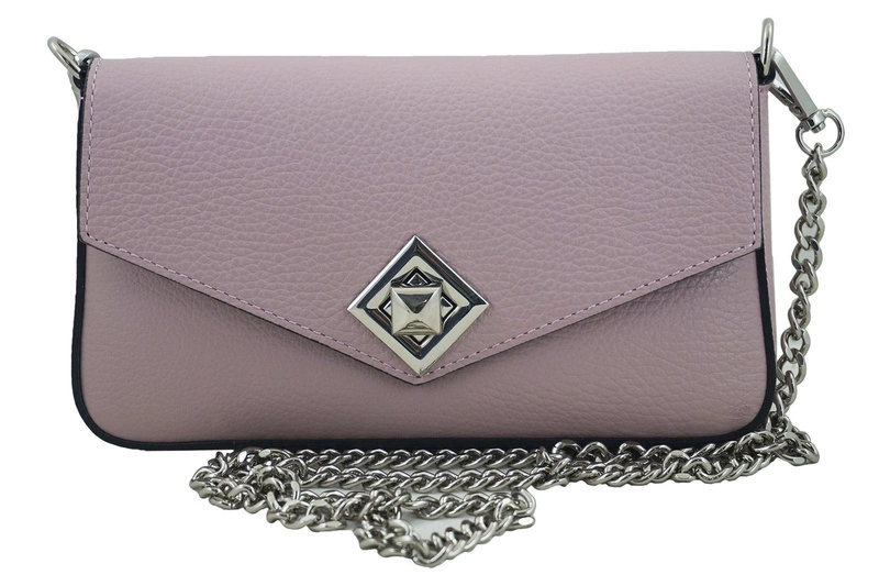 Wnętrze torebki: jednokomorowe wnętrze jest wykończone podszewką. Wewnątrz wyodrębniono małą otwartą kieszeń mieszczącą karty płatnicze, banknoty lub mniejsze kosmetyki. Małe skórzane torebki wizytowe posiadają srebrne okucia, dopinany łańcuszek bez regulacji (długość 120cm, wysokość 60cm), są zapinane ozdobnym srebrnym zapięciem wyróżniającym ten model listonoszki, która będzie idealnym dodatkiem galanterii skórzanej na każdy dzień, jak i na wyjątkowe okazje. Małe skórzane torebki wizytowe, są dostępne w szerokiej gamie kolorystycznej w kategorii LISTONOSZKI.