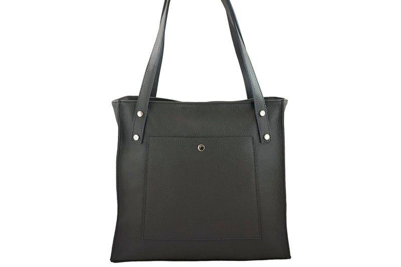Torebka skórzana na ramię została wykonana ze skóry naturalnej. Propozycja sklepu internetowego w kategorii WORKI - torebka skórzana na ramię, mieszcząca format A4 z ozdobną kieszenią i srebrnym nitami. Pojemna torebka typu shopper mieszcząca najpotrzebniejsze codzienne przedmioty: dokumenty, portfel, organizer oraz telefon. Idealna do pracy lub na uczelnię, w stonowanych kolorach, podkreśli Twoją stylizację. Ofertę kierujemy do kobiet poszukujących klasycznych dodatków codziennej garderoby. Chcesz być na bieżąco z naszymi nowościami, promocjami oraz akcjami rabatowymi? Zapisz się do newslettera i odbierz rabat -15% na zakupy.