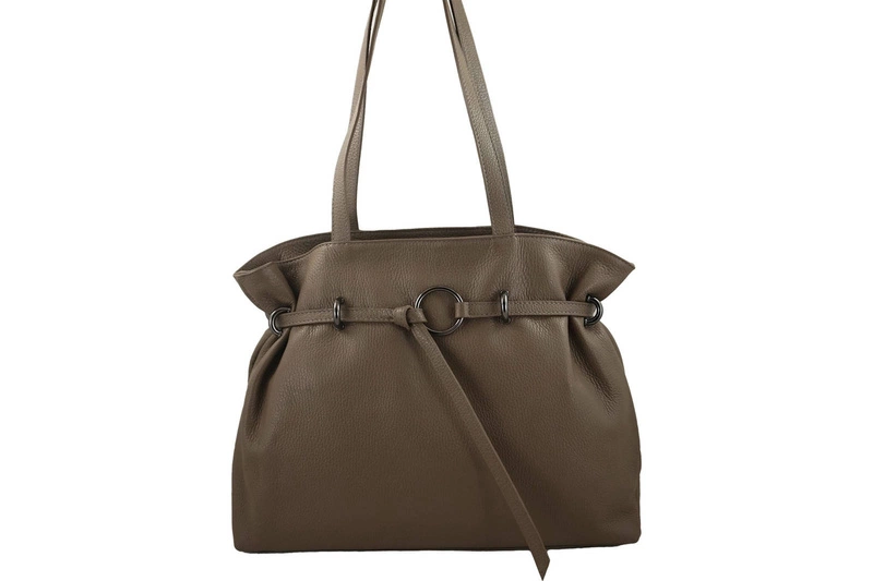 Duże torebki skórzane na ramię - Beżowe ciemne