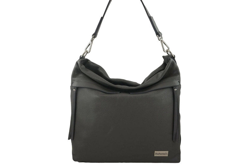 Wnętrze worka: miękka torebka worek na ramię jest wykończona podszewką. Wewnątrz wyodrębniono dużą zasuwaną kieszeń, która dzieli komorę główną na pół, a także małą zasuwaną kieszonkę oraz miejsce na telefon. Na zewnątrz, z przodu, znajdują się dwie zasuwane kieszenie, do których zmieści się telefon, portfel lub mały kalendarz. Praktyczna zasuwana kieszonka z tyłu torebki umożliwi szybki dostęp np. do kluczy. Miękka torebka worek na ramię jest zasuwana, posiada srebrne okucia, krótszy uchwyt na ramię, dopinany, bez regulacji (długość 39cm, wysokość 21cm) oraz dodatkowy regulowany pasek (maksymalna dł. 107cm, maksymalna wys. 58cm). Dużym atutem tego modelu jest ilość kieszeni, dzięki czemu w torebce będzie wszystko na swoim miejscu, a także możliwość zmieszczenia dokumentów lub książek formatu A4.