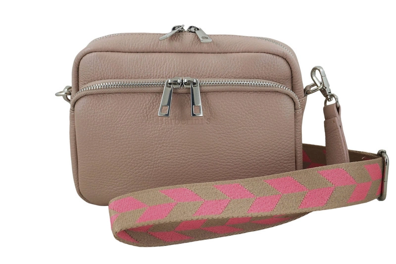 Torebka damska z ozdobnym paskiem różowa pudrowa została wykonana ze skóry naturalnej licowej. Klasyczny fason urozmaicony kolorowym paskiem, pojemną zasuwaną kieszenią z przodu oraz solidne wykonanie wyróżnia ten model listonoszki, która podkreśli stylizacje zarówno swobodne casual, jak i te na wyjątkowe okazje. Torebka damska z ozdobnym paskiem spełni oczekiwania naszych Klientek pod względem jakości produktu oraz uniwersalnego fasonu torebki, która sprawdzi się jako dodatek codziennej garderoby. Zapoznaj się z naszą najnowszą ofertą torebek skórzanych - listonoszek, klasycznych lub wygodnych plecaków. Oferujemy duży wybór produktów galanterii skórzanej Dla Niej i Dla Niego.