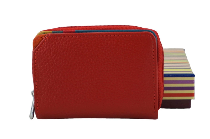 Portfele skórzane kolorowe zostały wykonane z wysokiej jakości skóry licowej. Niewielki rozmiar portfela - idealny również do małych torebek wizytowych, typu kopertówka. Wielokolorowe wnętrze, miejsce na bilon oraz karty płatnicze, funkcjonalne kieszenie / przegrody to tylko niektóre walory oferowanych w naszym sklepie portfeli skórzanych. Portfele skórzane kolorowe z ochroną kart RFID - ochronna funkcja przed kradzieżą, to nieodłączne wyposażenie każdej damskiej torebki. Szeroka paleta kolorystyczna oraz dedykowane do portfela kolorowe pudełko zachęcają do zakupu produktu w naszym sklepie, który będzie również idealnym pomysłem na prezent. Portfele skórzane kolorowe z ochroną kart RFID dostępne w szerokiej ofercie naszego sklepu z wyjątkową kolekcją galanterii skórzanej.