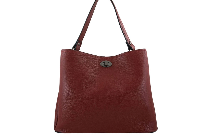Wnętrze kuferka: komora główna jest surowo wykończona. Wewnątrz znajduje się pojemna zasuwana komora z mniejszą zasuwaną kieszenią mieszczącą telefon, portfel lub kosmetyki. Kuferek skórzany z ozdobnym zapięciem posiada uchwyt bez regulacji (długość 41cm, wysokość 19cm), dodatkowy i regulowany pasek (maksymalna dł. 115cm, maksymalna wys. 62cm) oraz metalowe stopki na spodzie, chroniące przed otarciem.