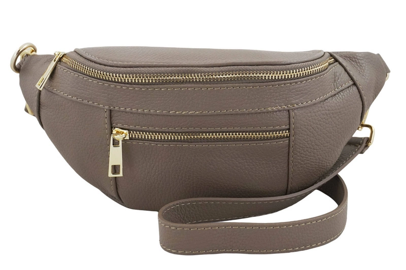 Damska torebka nerka skórzana z kieszenią beżowa ciemna została wykonana ze skóry naturalnej licowej. W kolekcji galanterii skórzanej oferujemy modne oraz klasyczne dodatki garderoby, które idealnie komponują się ze swobodnymi kreacjami stylu miejskiego. Praktyczna i wygodna damska torebka nerka skórzana z kieszenią to niezastąpiony dodatek codziennej garderoby. Idealna na spacer, spotkanie, zakupy, czy jazdę na rowerze lub rolkach. Nie krępująca ruchów. Regulowany pasek umożliwia noszenie torebki nerki wygodnie w pasie lub przewieszonej przez ramię. Wyjątkowe i gustowne torebki skórzane - listonoszki, nerki, klasyczne oraz worki dostępne w naszym sklepie wyróżniają się modnym fasonem, subtelnymi ozdobami oraz solidnym wykonaniem. Dostępna w najnowszej kolekcji damska torebka nerka skórzana z kieszenią uzupełni swobodny miejski outfit, podkreśli styl i charakter Twoich kreacji.